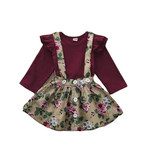 Buy Girl Tracy Floral Wine Top With Suspender - 2 Piece Set in Nigeria