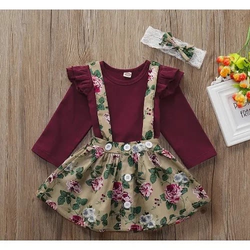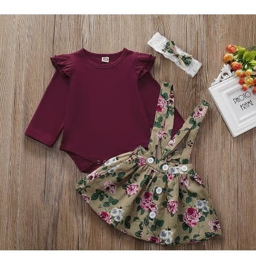 Buy Girl Tracy Floral Wine Top With Suspender - 2 Piece Set in Nigeria