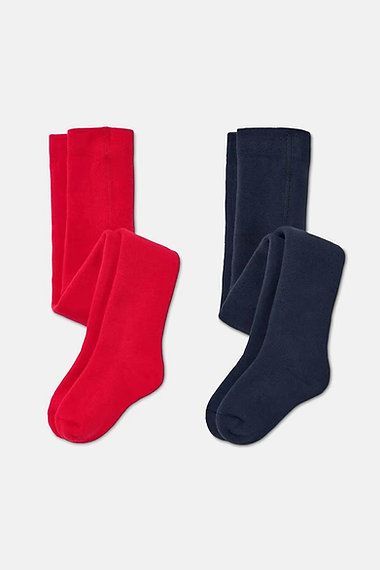 1 x Girls Tights Set Of 2, Red and Navy Blue