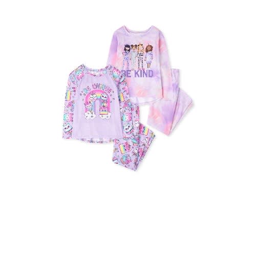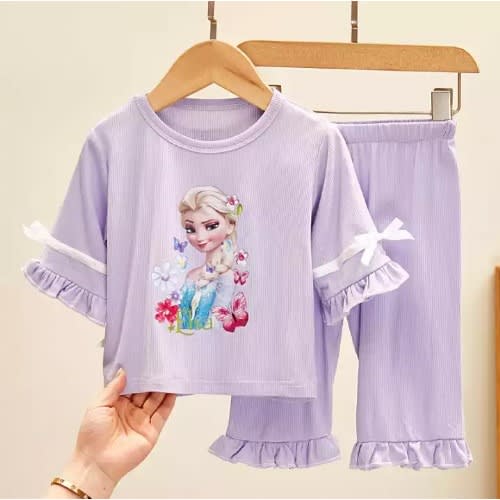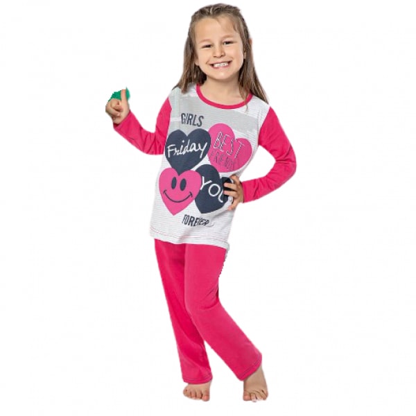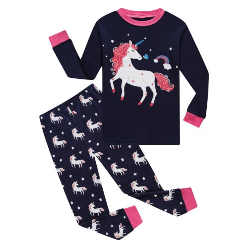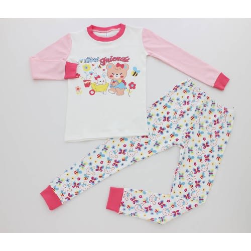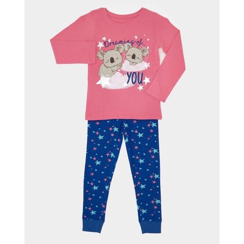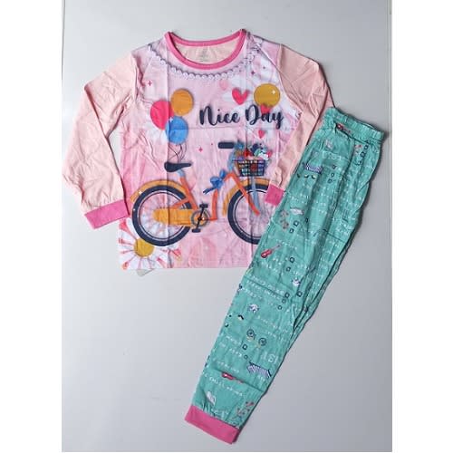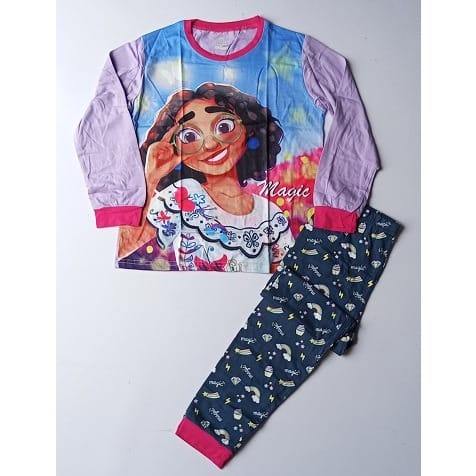 Long sleeved pyjama sets, with graphics pattern and colourful print trouser to Match the top. Nice pyjamas set for your princess.