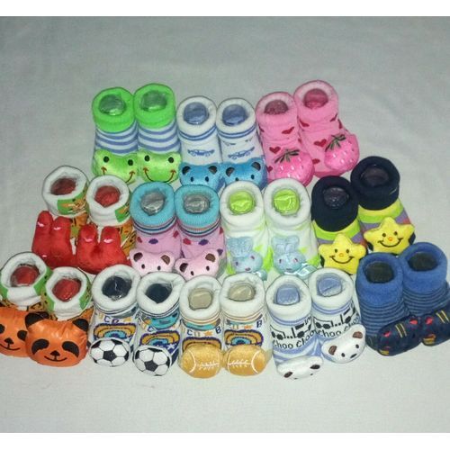 3 Girls coloured booties socks with bear details will be good for your girls outings Keeps your kids' feet warm all day for the first 0-6 months. The adorable patterns and colours are lovely on girls. This serves as shoes for your baby. Soft and very skin friendly booties socks. Easy to wash. Do not bleach.