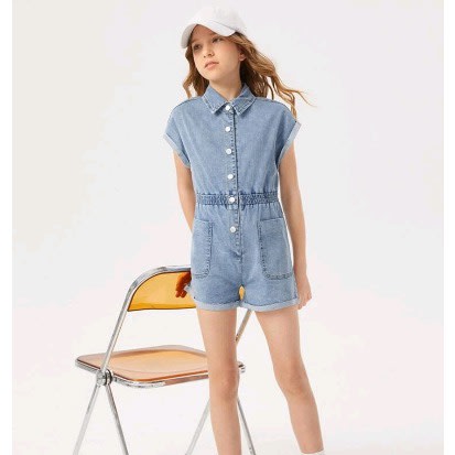 Romper plain blue denim jumpsuit