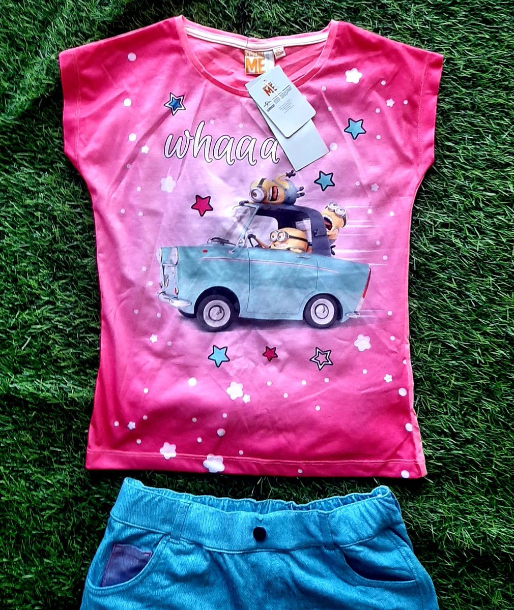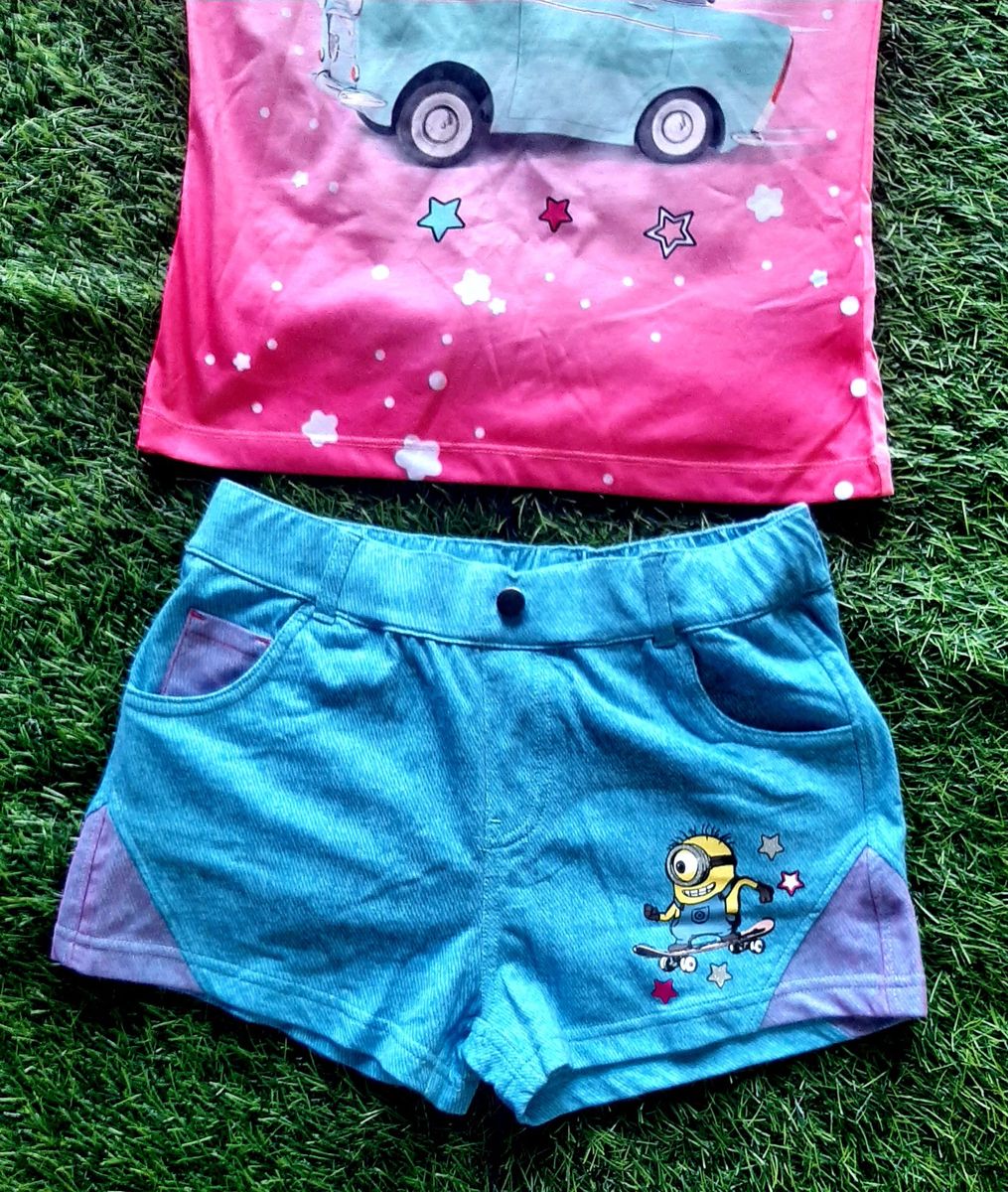 You will love this Girls licensed Despicable me 2 piece set featuring a round neck top with car and minion graphics in front and a matching elastic waist blue short designed with a minion logo on the side. Our two piece set is a stylish casual outfit, well fitted for their comfort.