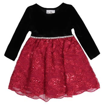 A Rare Editions Girl's Dress for special occasions for your daughter. Beautifully made dress for girl's made with 90% polyster and 10% spandex material, a red with black top dress with trimmings to enhance the dress beauty with long hand. Also a great gift for friends and families.