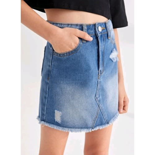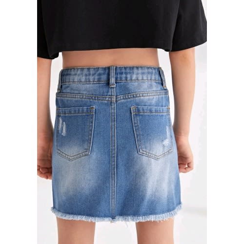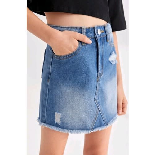 Buy Girls Elastic Waist Raw Hem Distressed Denim Jeans Skirt - Blue in Nigeria