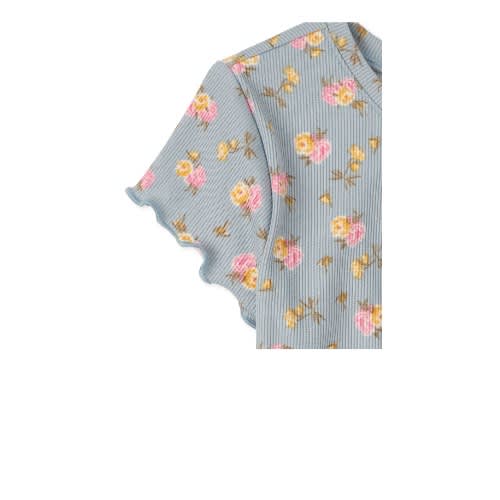 Buy Girls Floral Ribbed Henley Top - Smoky Blue in Nigeria
