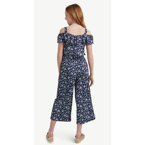 This trendy jumpsuit complements your girl's ever-evolving style with its all-over floral print in super ribbed fabric.