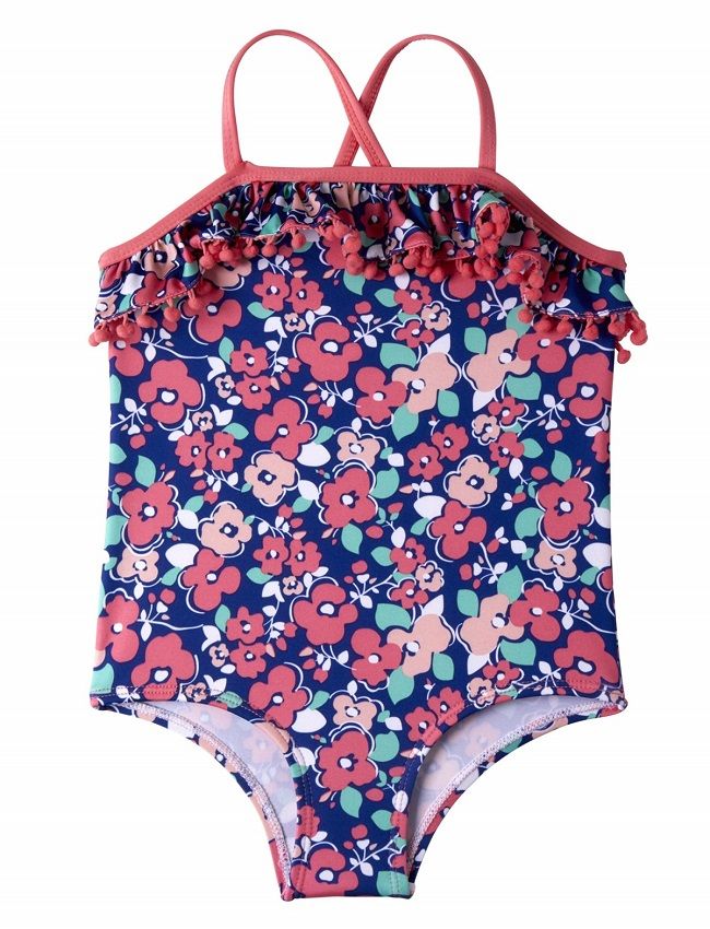 one-piece swimwear with a lovely print and pink ruffle details, will be a very perfect number for that pool party. Keep her looking cute with this 1-piece swimsuit.
