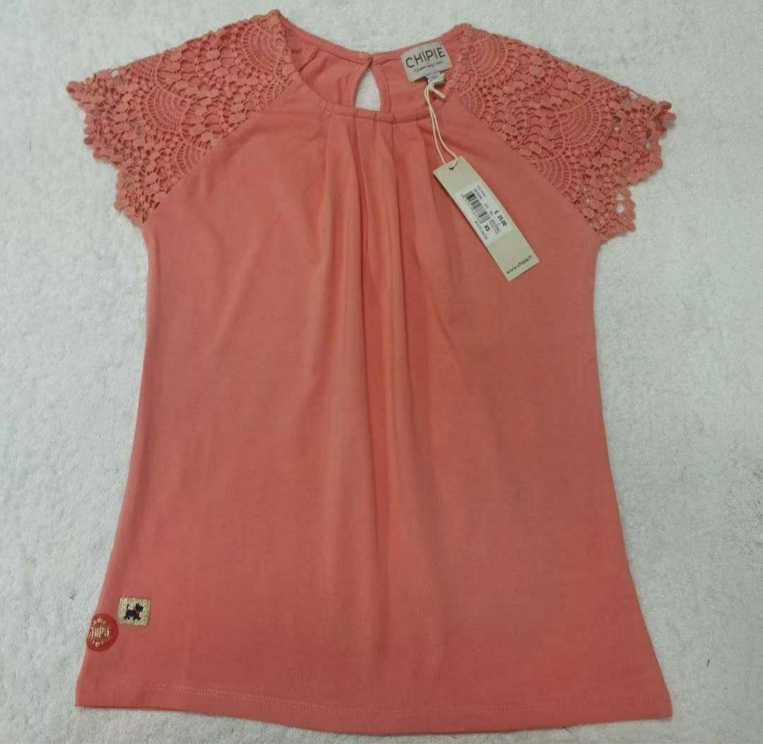 Ribbed crew neckline complete the short puff sleeve princess tee tshirt.