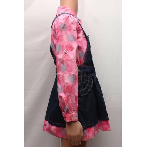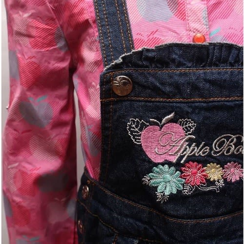 Apple Bottoms" Girls Great Fashion 2 Piece Set This Great Denim 2 Piece Set Made From 100% Cotton. Comprising Of A Nice Long Sleeved print shirt a pinafore Denim Jeans With 2 Pockets . Little girls are made of sugar, spice and everything. Ensure your little one looks great with this stylish unique and nice