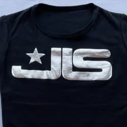 Features detailed print in front of Tees