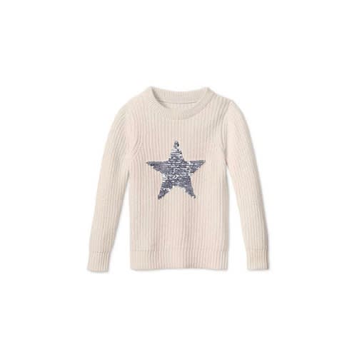 Girls Chunky Knit Sweater With Reversible Sequins - Beige
