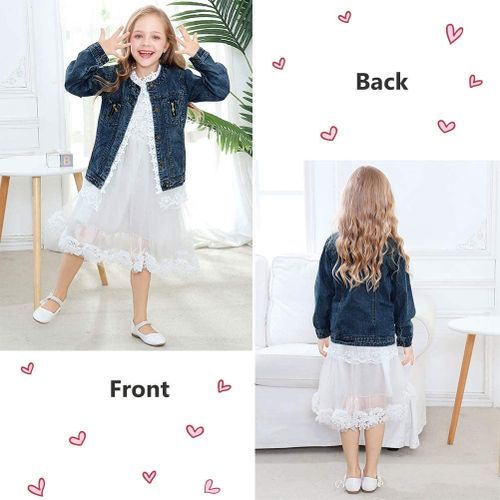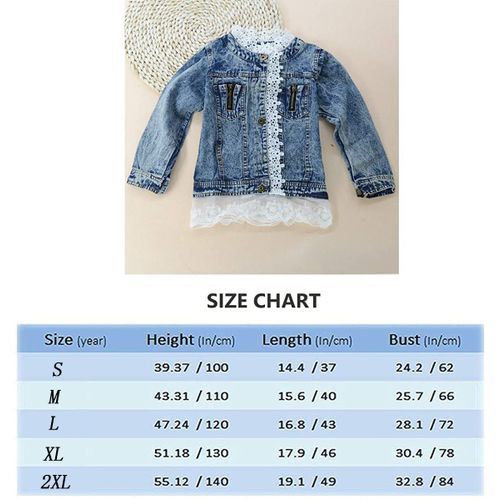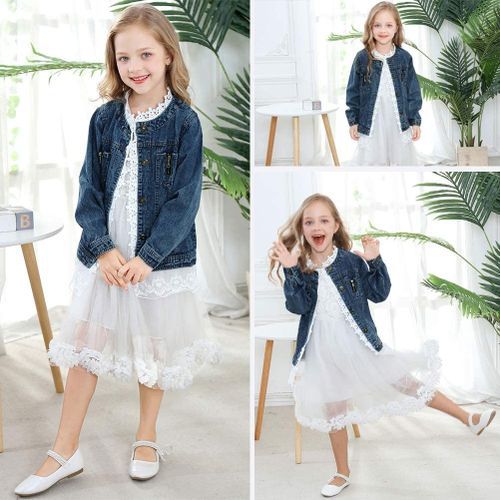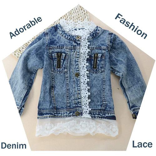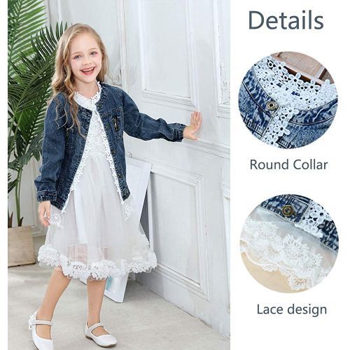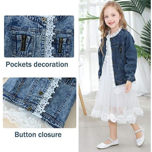 - Denim & Lace --- Floral lace hems with round collar design, cute and fashion, constructed with 95% cotton and 5% polyester fabric, and these cute little girls denim jackets are lightweight and comfortable, fits for 2-10 years old kids.