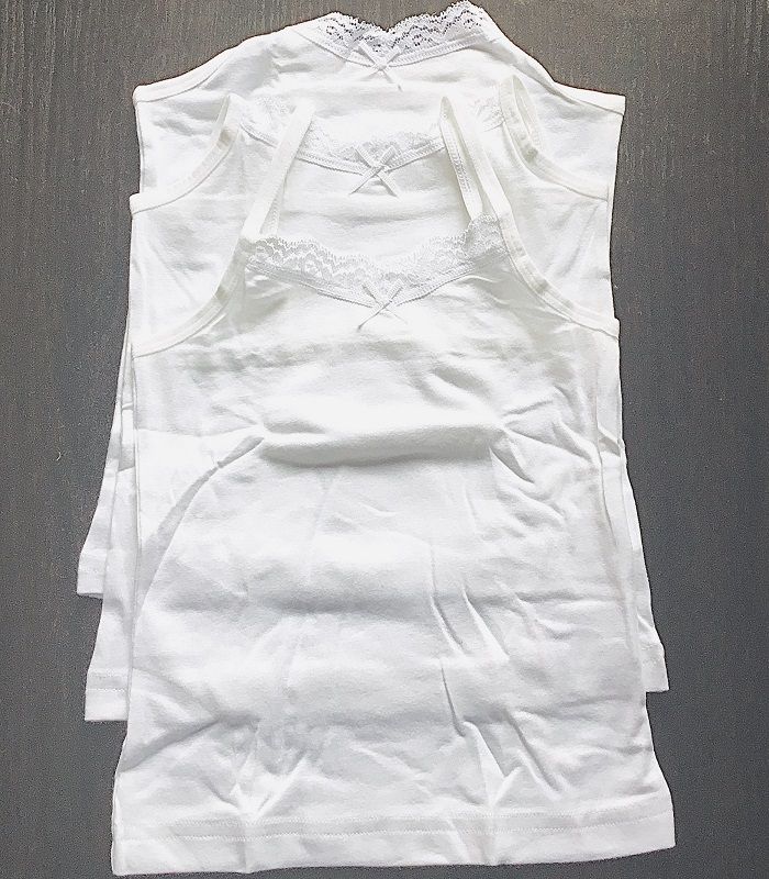 Girls 5 pack cami tops is 100% combed cotton lovely quality tops with 100% cotton. The pack contains white colour, which is Ideal for wearing under school uniform or at any other time of year. Available in age 2-12 years.