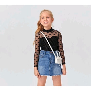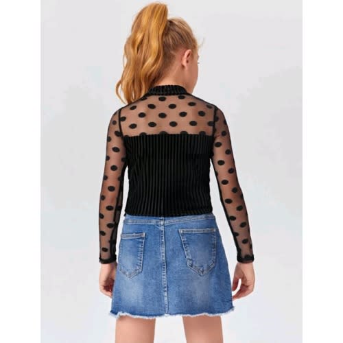 Buy Girls Long Dot Sheer Mesh Yoke Velvet Top-size Run Slim&small (order 3 Sizes Up) in Nigeria