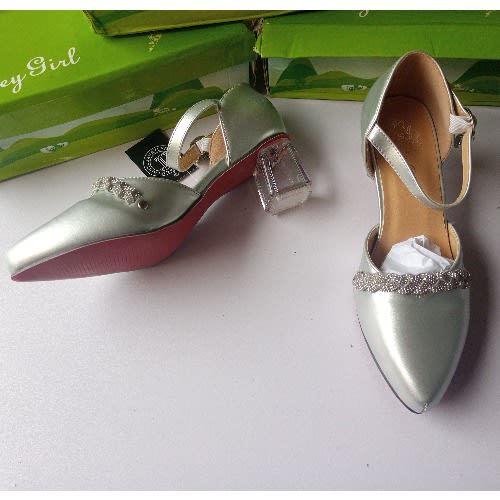 Girl's lovely mature dress shoe with transparent heels. Solid sole and fit to feet.