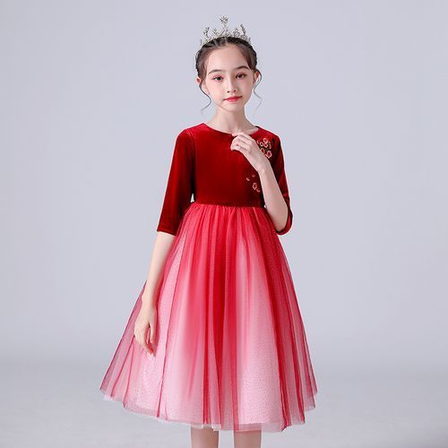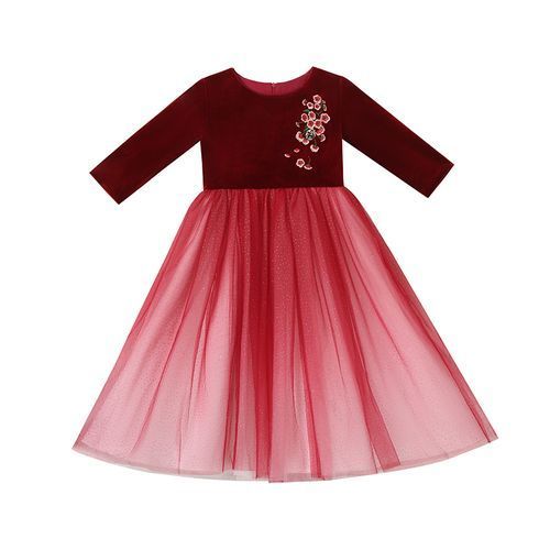 Buy Girls Princess Dress Mesh And Velvet Embroidered Red Gown+Crown For Free in Nigeria