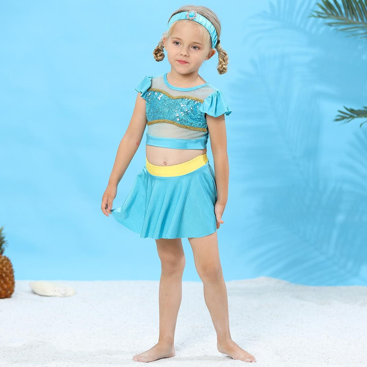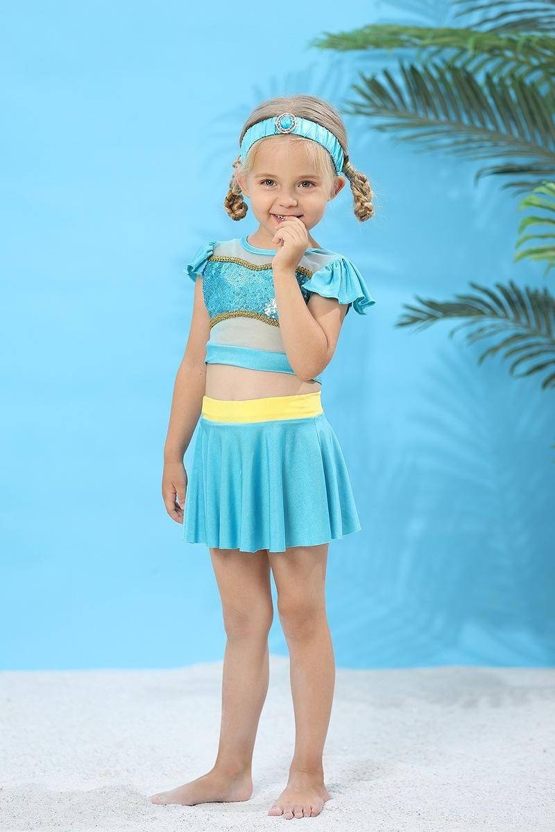 For extraordinary sparkle among the beach and pool crowds - the ruffle sleeve princess swimwear design originated from series of princess, like Rapunzel, Sofia, Snow White, Cinderella, Aurora, Anna, Jasmine, Minnie, Flower Fairy, Belle and Queen Elsa, including: One-piece, two-piece or three-piece set.
