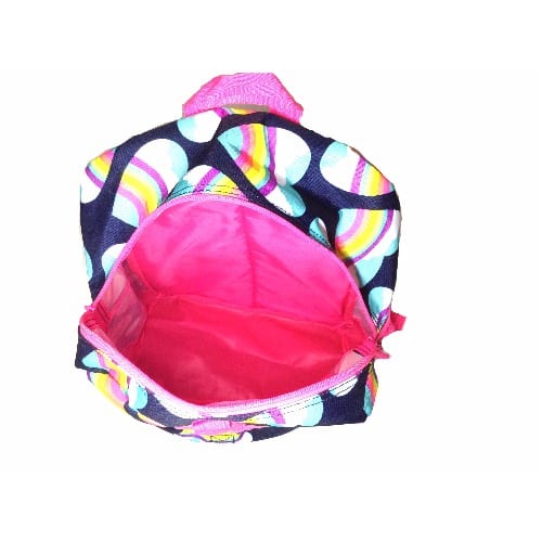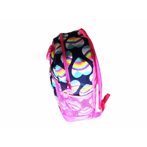 Toddler size backpack measures - 8.5"W X 10"H X 3.5"DOne front pocket and two side sport mesh pockets. Adjustable shoulder straps