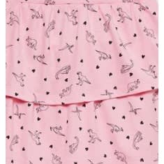 Features: Tiered ruffle skirt with shorts underneath; allover print