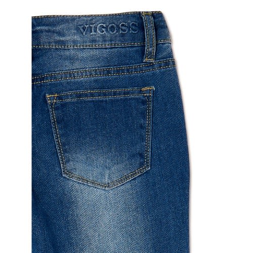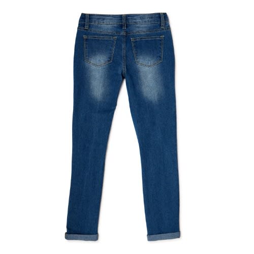 Buy Girls Stretch Cuff Skinny Jeans With Pink Keychain Bag- Blue Wash in Nigeria