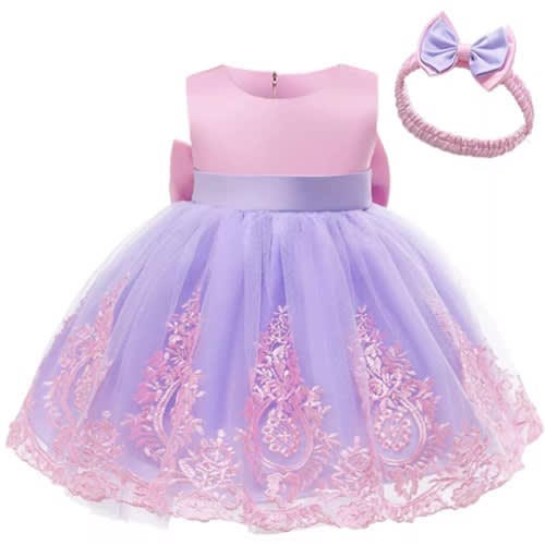 Buy Girl's Super Lace Design With Bow - Purple And Pink in Nigeria