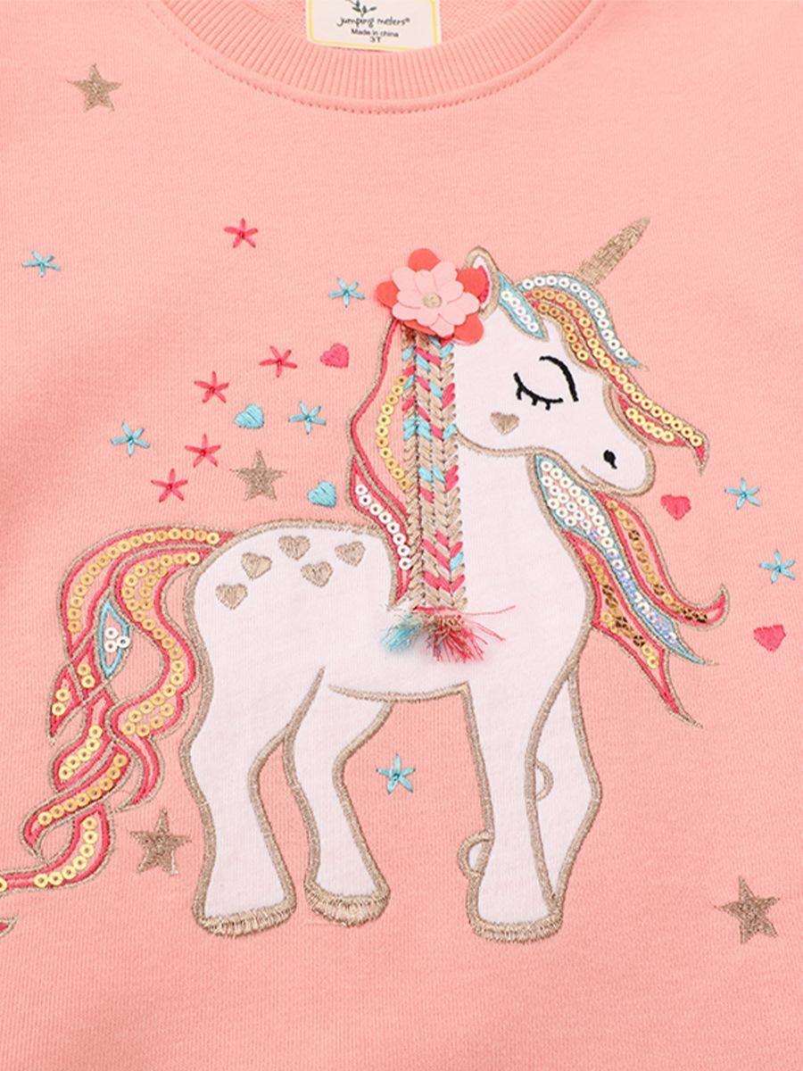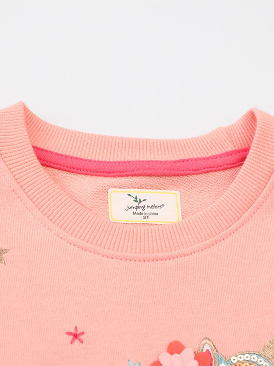 1*Girls Sweatshirt Cartoon Embroidery Long Sleeve Sweatshirt Pink