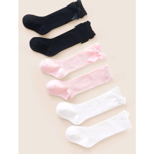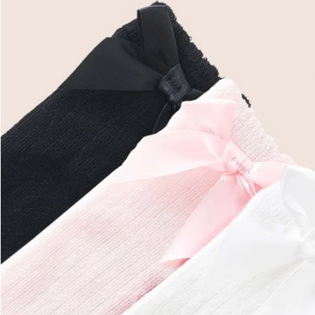 Buy Girls Toddler Knee Socks With Stylish Bow - 3 In 1 Pack - Pink White Black. in Nigeria