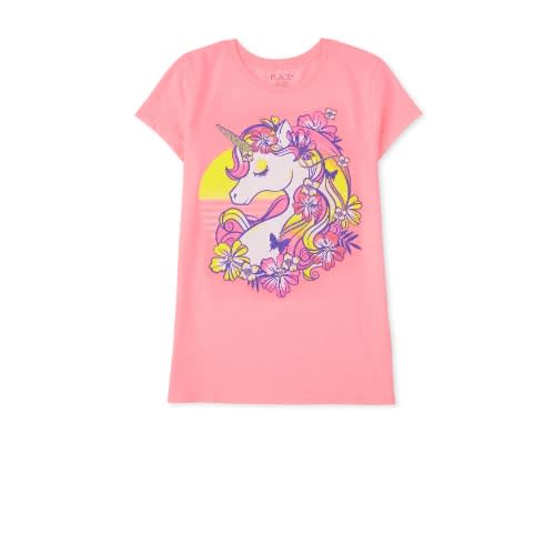 Buy Girls Unicorn Floral Glitters Graphic Top- Pink in Nigeria