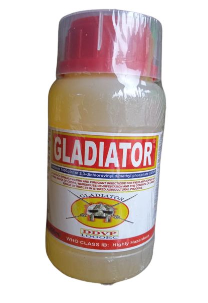 Contains 1000g/l of 2,3-dichlorovinyl dimethyl phosphate (ddvp).targets all major citrus pests.provides quick knockdown and long lasting residual. It is effective against mosquito, cockroach, bedbugs, aphids, spider mites, caterpillars, thrips and white files. It kills insects by contact, ingestion, and fumigant action. It causes acute poisoning and disrupts activities in the nervous system of an insect resulting in its death.Gladitor controls Sucking and chewing insects and spider mites in a wide range of crops, including fruit trees, vegetables, rice, wheat, maize, cotton and cocoa. Gladiator is an organophosphate compound with strong acaricidal actions and is recommended for farmers due to its poisonous effect on agricultural pests such as; spider mites, sucking and chewing insects, aphids, caterpillars, whiteflies e.t.c. by acting via stomach contact and respiratory poisoning.
