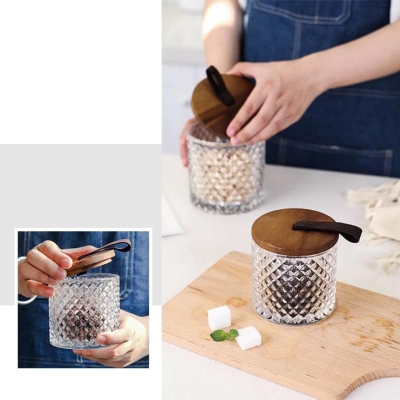 Product name: Glass storage tank with wooden cover