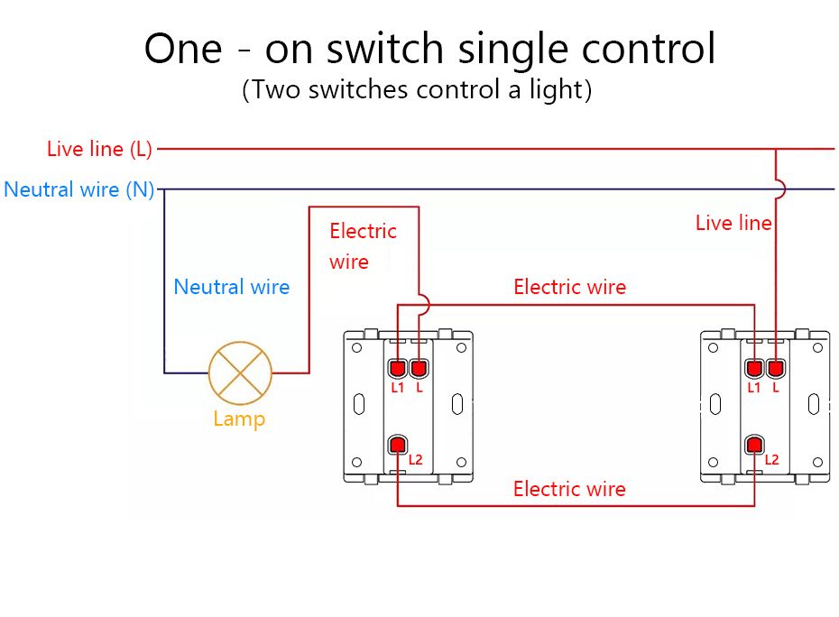 The switch provides two standard wiring methods, one is to control a light for a switch socket, and the other is to control a light by two switch sockets.