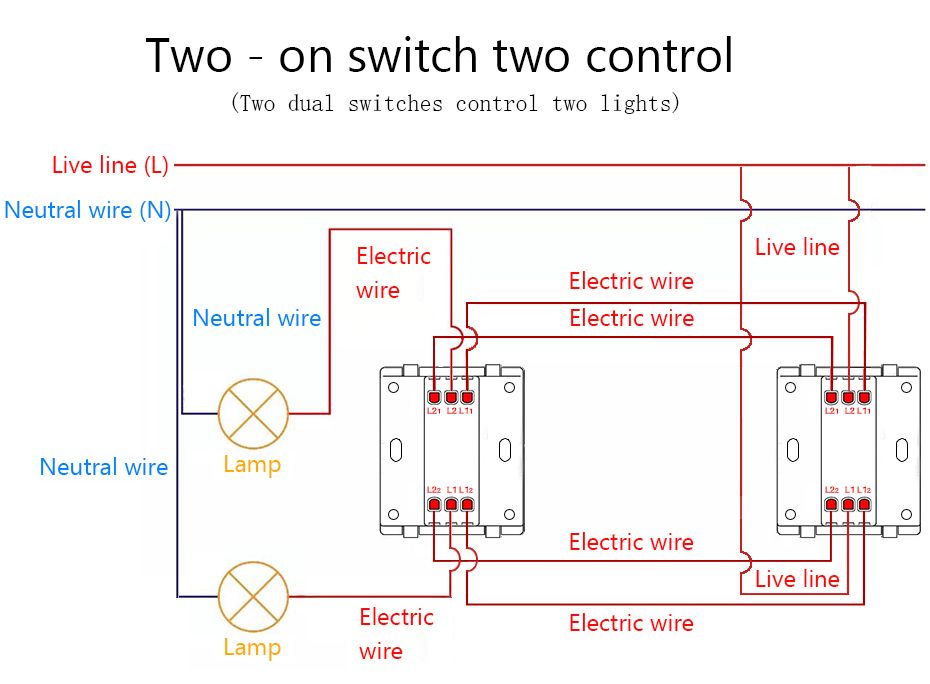 The switch provides two standard wiring methods, one is to control a light for a switch socket, and the other is to control a light by two switch sockets.