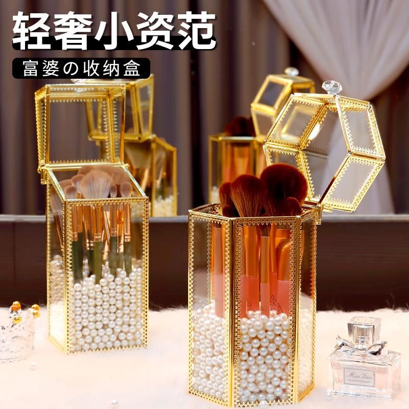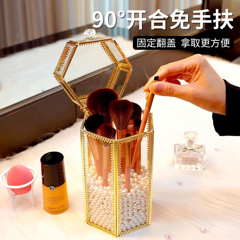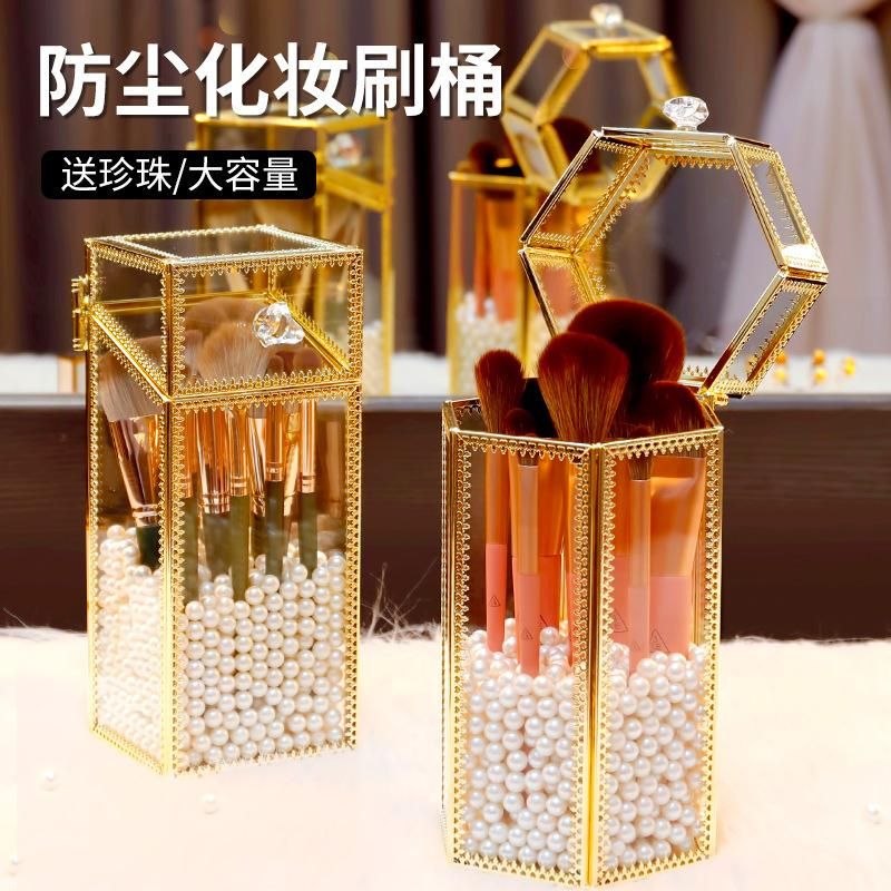 Color:❤Retro Quadrangle +1 Large Bag of White Pearls [Dustproof Can Hold about 13 Makeup Brushes], Retro Quadrangle +1 Large Bag of Mermaid Color Pearls [Dustproof Can Hold about 13 Makeup Brushes]],❤Retro Hexagon +1 Large Bag of White Pearls [Dustproof Can Hold about 15 Makeup Brushes], Retro Hexagon +1 Large Bag of Mermaid Color Pearls [Dustproof Can Hold about 15 Makeup Brushes]], [New Color Matching] Rose Gold Hexagon +1 Big Bag White Pearl,❤[Super Cost-Effective] Makeup Brush Can Free Pearl, [Green Cloud] 14-Piece Makeup Brush Set