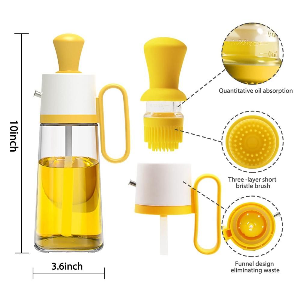 Easy to Clean: Each kit and gadgets of oil spray can be disassembled and cleaned separately, and the dispenser is easy to install. The brush can also be used alone, and it is convenient to apply ketchup, sauce, and peanut butter. Material:plastic glass