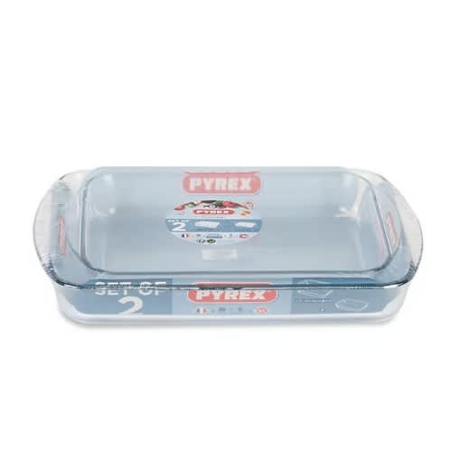 Kit out your kitchen in style with this Pyrex two-piece roasting set. These stylish glass roasters come in two sizes, catering for any meal, big or small: 35 x 23 cm and 40 x 27 cm. These classic roasting dishes are dishwasher safe for your convenience and are highly resistant to shocks and scratches.