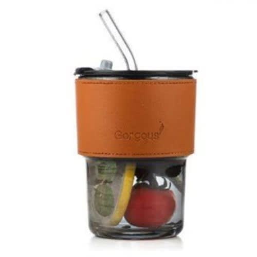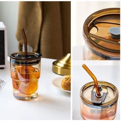 Buy Glass Slub Cup With Lid Straw Leak-proof - 350ml in Nigeria