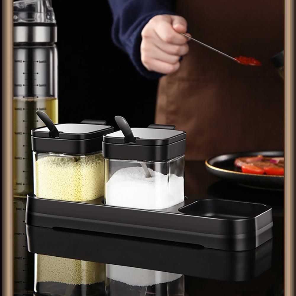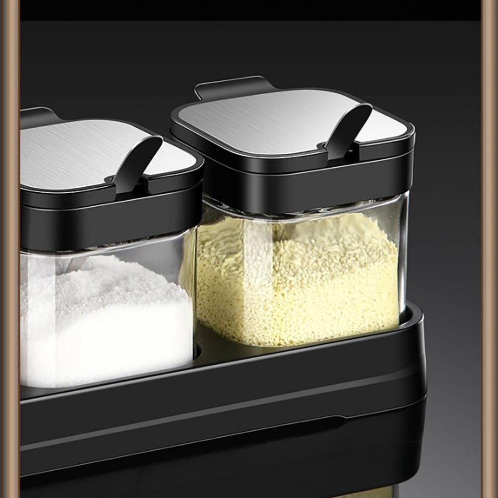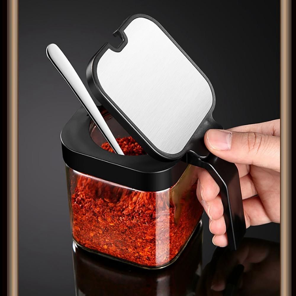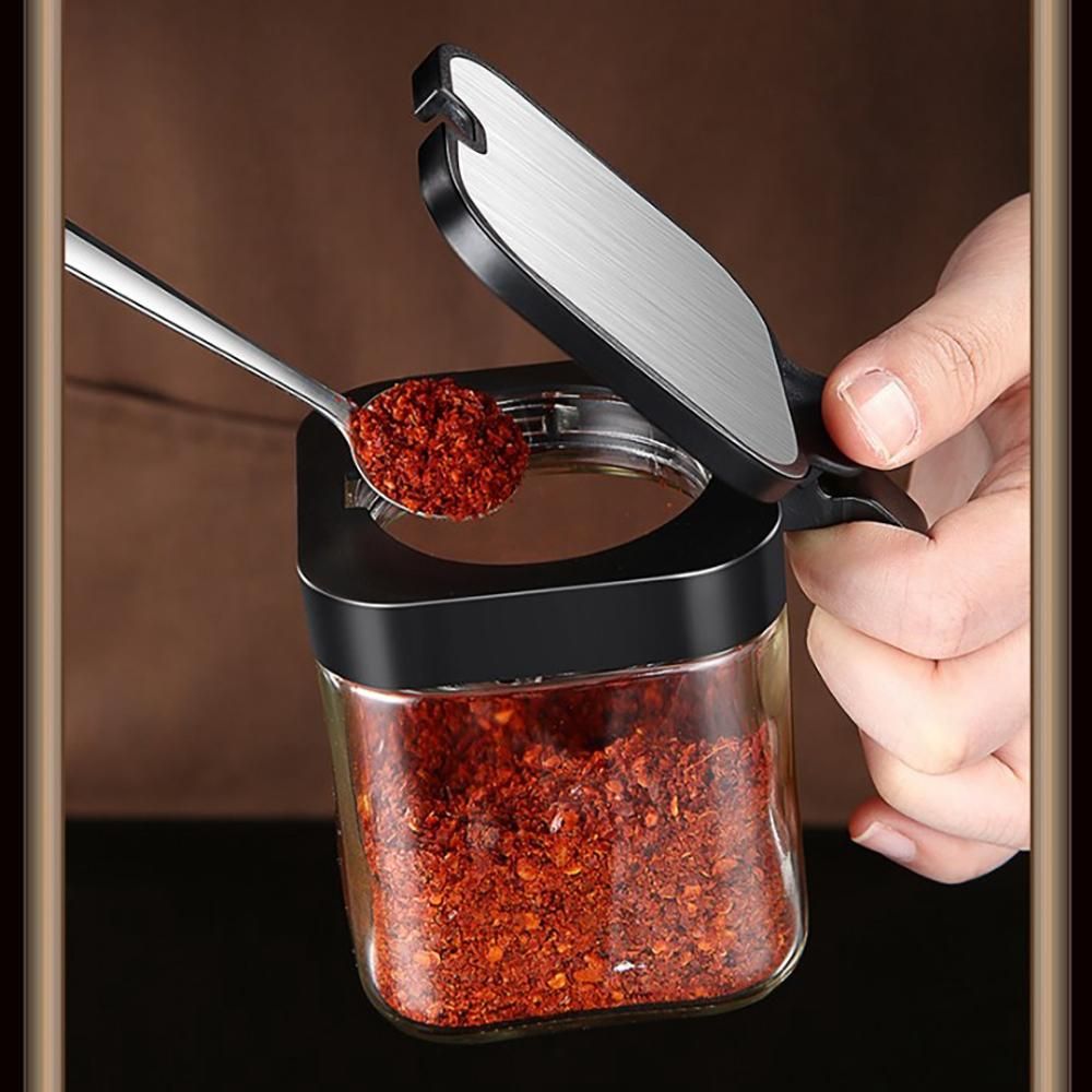 Cap with A Slot To Store The Spoon: The notch design on the lid of our seasoning bottle makes it possible for long-handled spoons, thereby enhancing your use experience. The included spoons allow you to easily control the amount of condiment, make scoop spices more convenient. The lid is a flip-top design, you don't need to remove the entire lid, it is more convenient for you to open the jar.