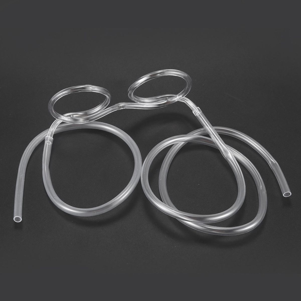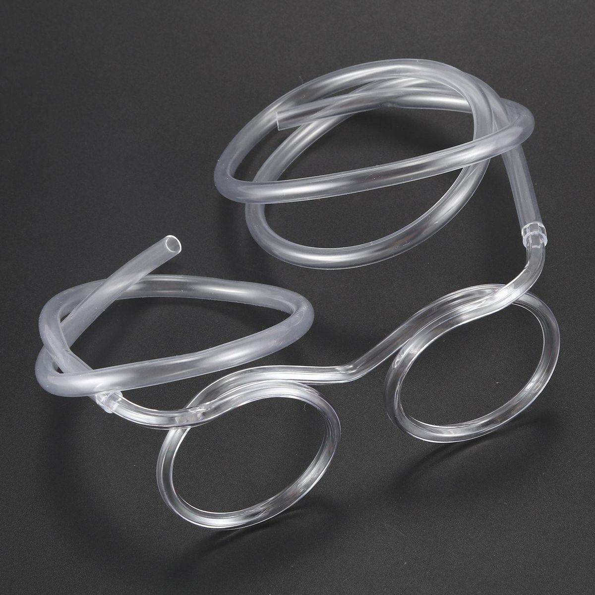 Put the glasses with the short end in your mouth and putting the long end in your drink, then you can see the spiral of glass through the straw around your eyes