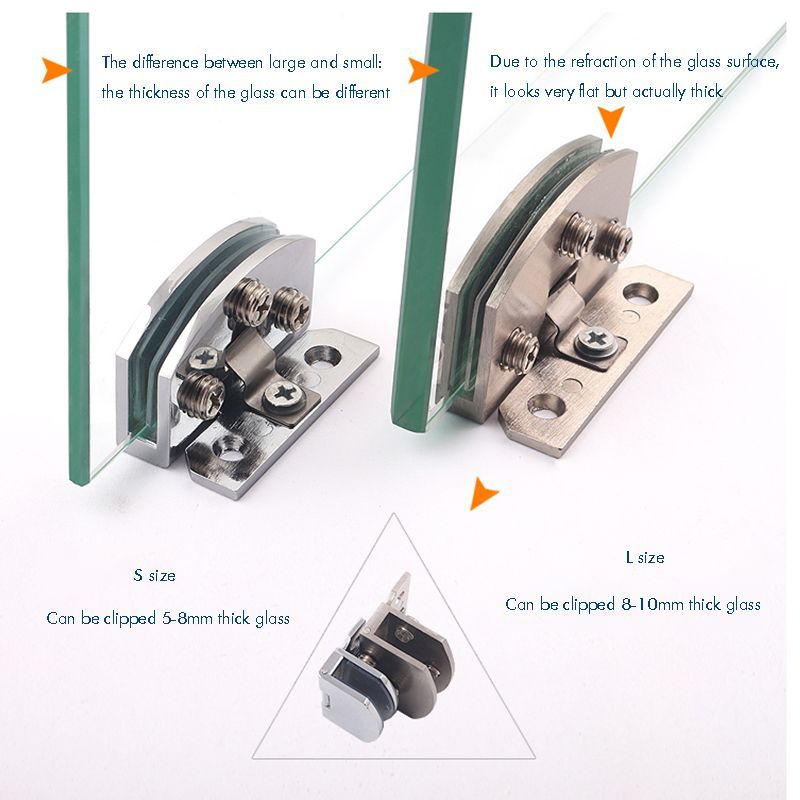 1X GlHinge Free Punching Zinc Alloy Brushed / Bright Hinges for Wine Cabinet Display Cabinet 5-8mm / 8-10mm Thickness Glass