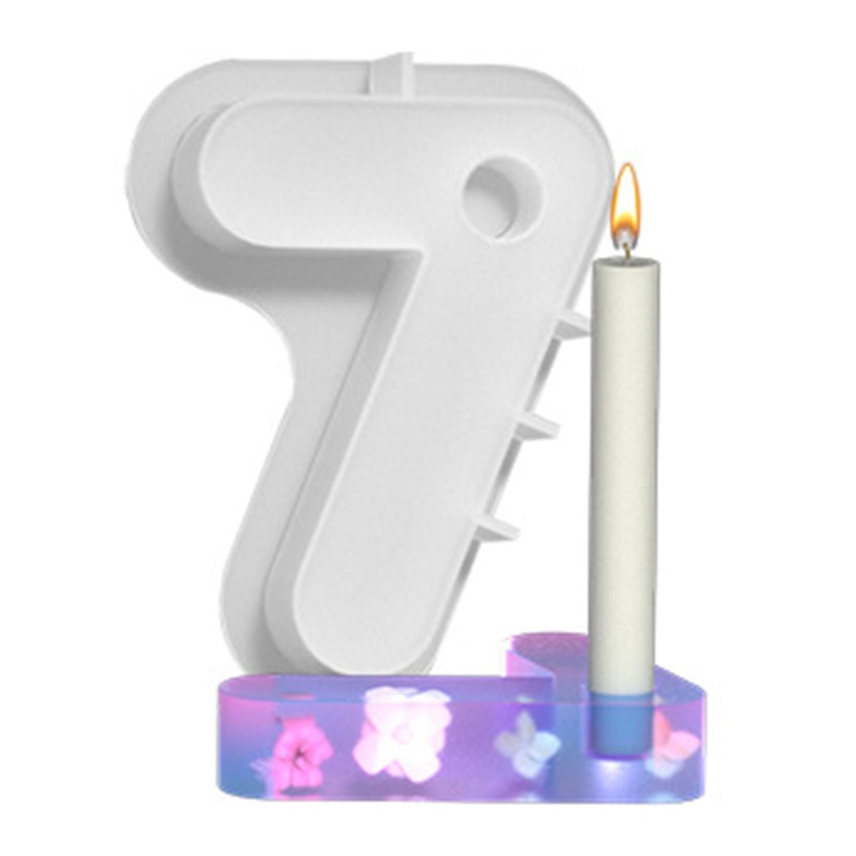 Our number candlestick mold, the perfect tool for creating unique and elegant candle holder designs. made of durable and flexible silicone, these molds ensure easy release and a long service life. with endless possibilities, you can fill the mold with epoxy resin and customize your creations with glitter, mica powder, liquid resin dye, or dried flowers.