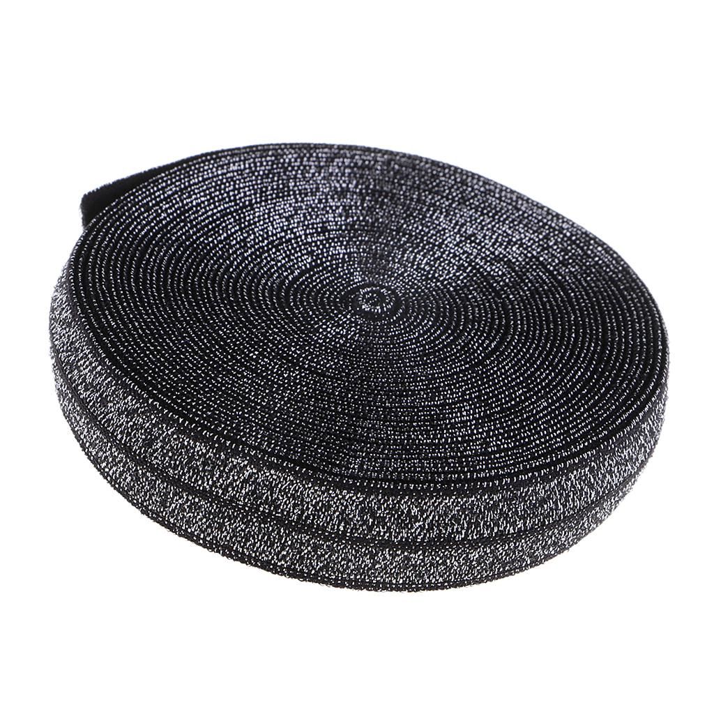 5 Yards Bling Cotton Fold Over Sewing Elastic Band for Dressmaking Black