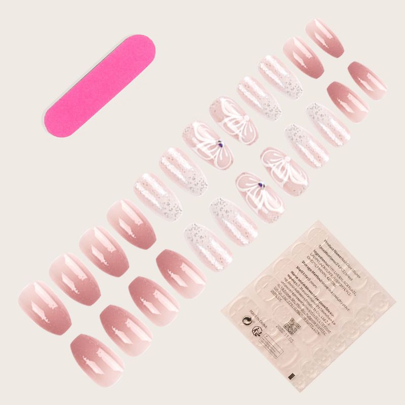 24pcs Press on Nails 1 pcs jelly 1 pcs nail file 1 wooden stick