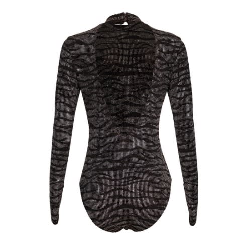 Women Turtleneck Long Sleeve Bodysuit - Black & White