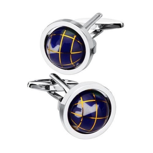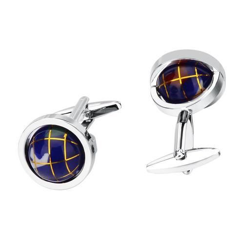 Globe Design Novelty Blue Ball Cufflinks For Men's French Shirt Cuff Links Fashion Men Personality Jewelry Wedding Gift-Tie Clips And Cufflinks