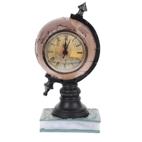 HOME CLOCK DECOR STAND.Also available in BLACK colour..Beautiful decor accessory .Home/Office/Hotel/Lounge decor accent..Material: Metal and Wood.The clock works. It requires 1AA battery (not included)..
