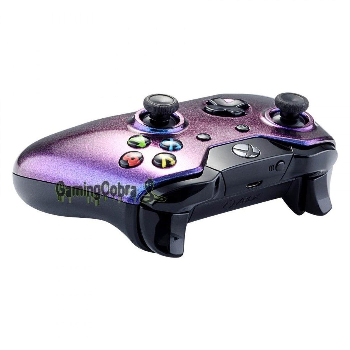 FITS MODELS: For Xbox One controller with 3.5 mm audio jack. For Xbox One controller with no 3.5 mm audio jack. Don't fit for Xbox One Elite Controller Don't fit for Xbox One S Controller Features: It is a beautiful change up from a boring normal black without spending a ton of $$$. Custom design unique chameleon. When you look at the top shell from different perspectives , it will look like a Chameleon changes color from rose red to purple to blue. Glossy surface. Personalize your controller. Made of durable non-toxic ABS plastic. Odour free. We will test it before shipping. PACKAGE INCLUDES: 1 X Front Shell (controller, tools and other parts are not included) QUALITY GUARANTEE: Fits flush for Xbox One controller. We will test every single one before we ship. The size of button holes are just right. Made of durable non-toxic ABS plastic. Odour free. INSTALLATION GUIDE: You need to take apart your controller to install this faceplate. Many professional installation guide video on YOUTUBE. Easy to get. Contact us through Message then we can offer you a video link which was made by us. You may need an open shell tool, T8H screwdriver. You can buy these tools from my store. Certain installation skill is required. The installation is not complicated and it is much easier than to install a full housing shell. Simply replaces your top shell.