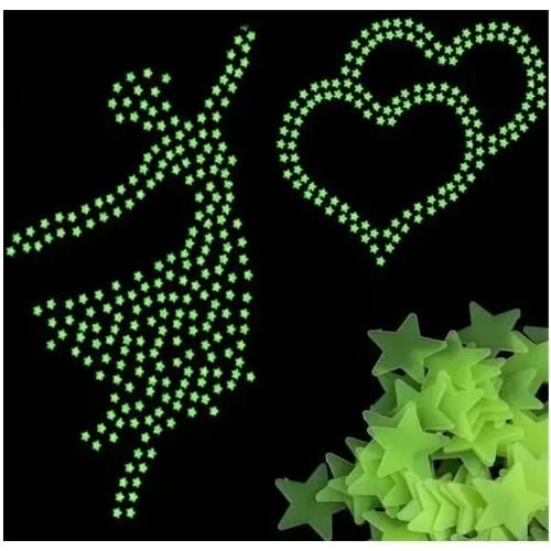 100pcs 3D Stars Glow In Dark Luminous Tape Fluorescent Plastic Wall Sticker Wall Decal Decorations