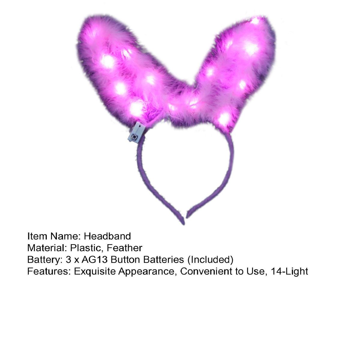 Feather rabbit ear headband has a three-gear flash and is suitable for party entertainment and club.
