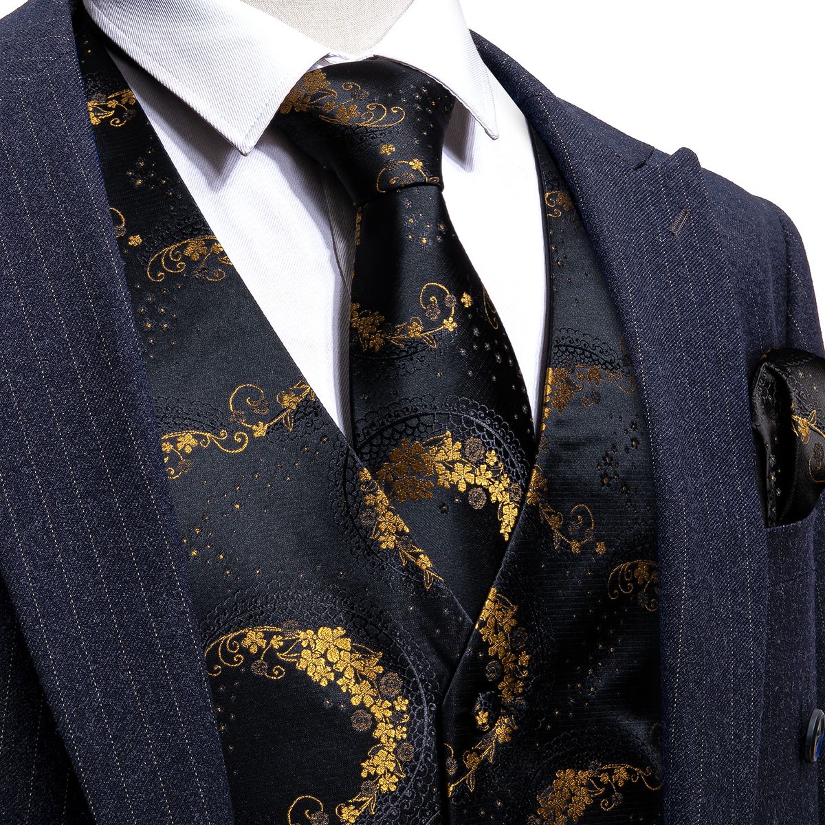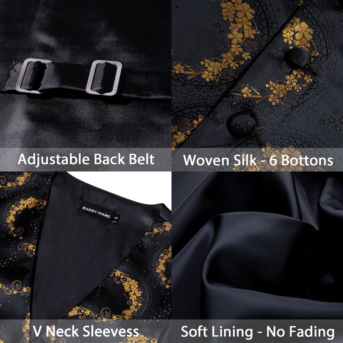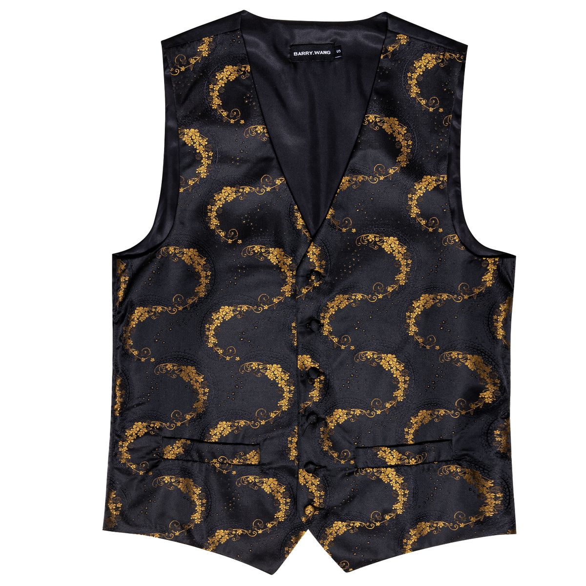 Buy (GM-2062-Brooch)Black 5PCS Designer Mens Wedding Suit Vest Gold Floral Jacquard Folral Silk Waistcoat Tie Brooches Vest Set Barry.Wang Groom DOU in Nigeria